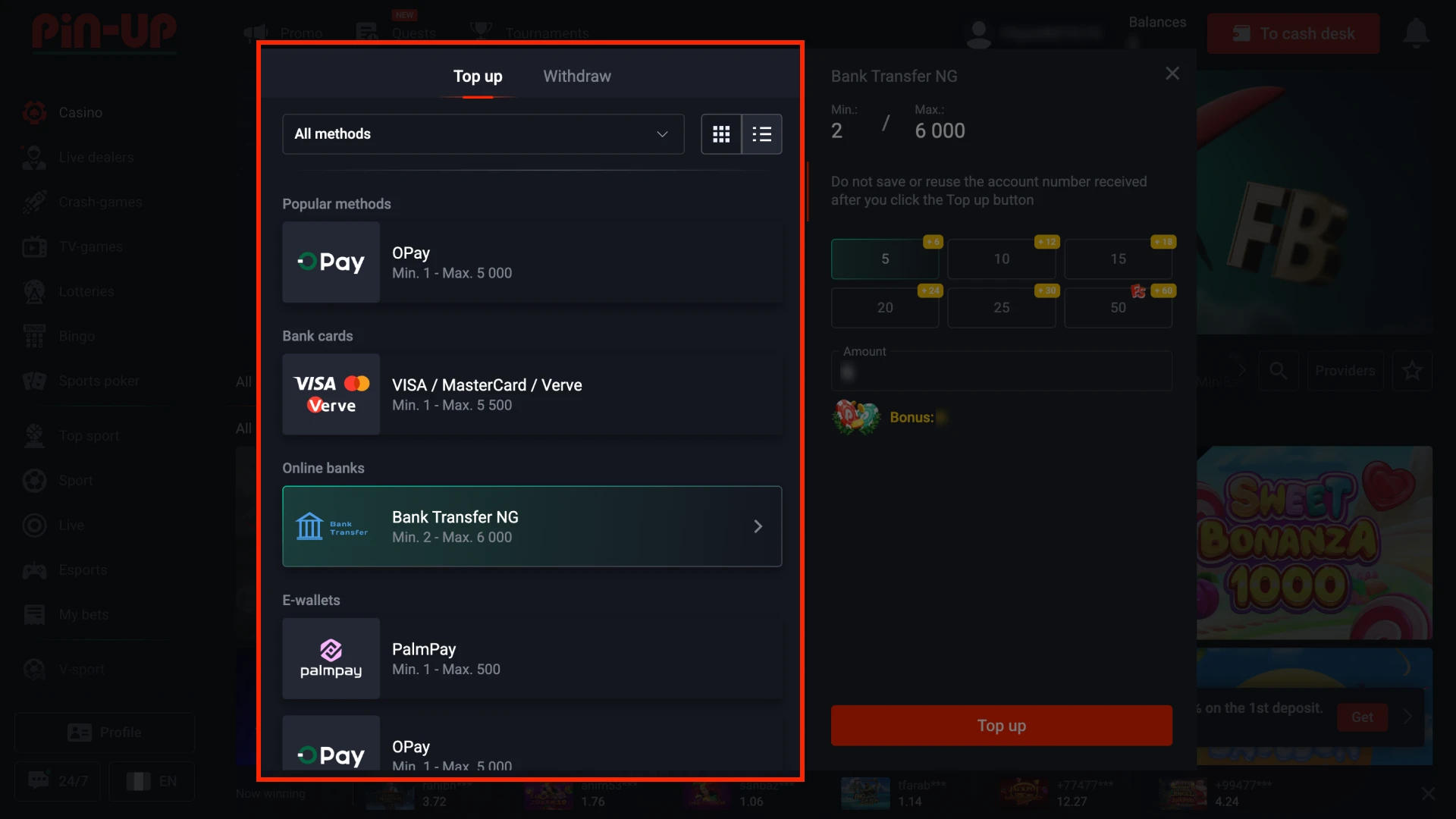 Once the deposit is successful, you can enter any sports or casino section without delay.