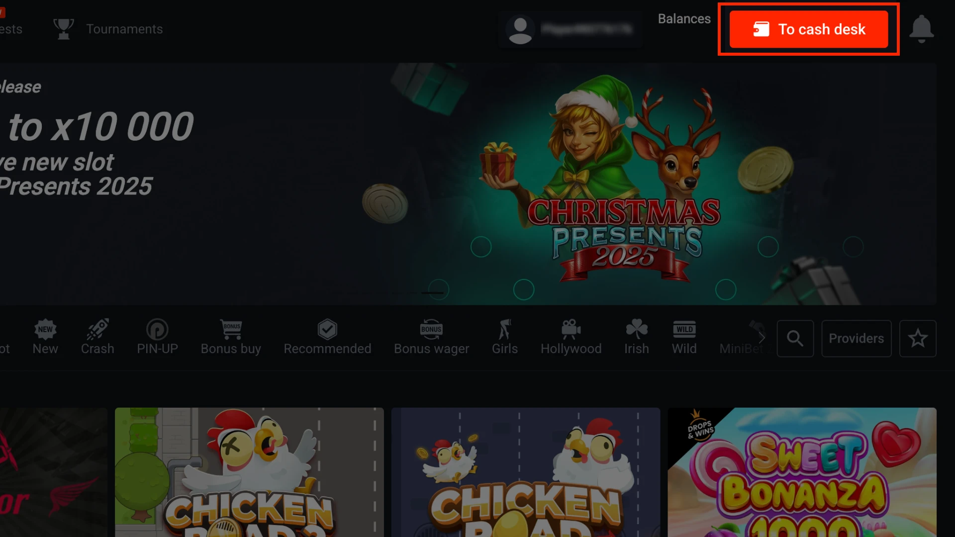 Find the Cash Desk section in your account menu and tap Deposit.