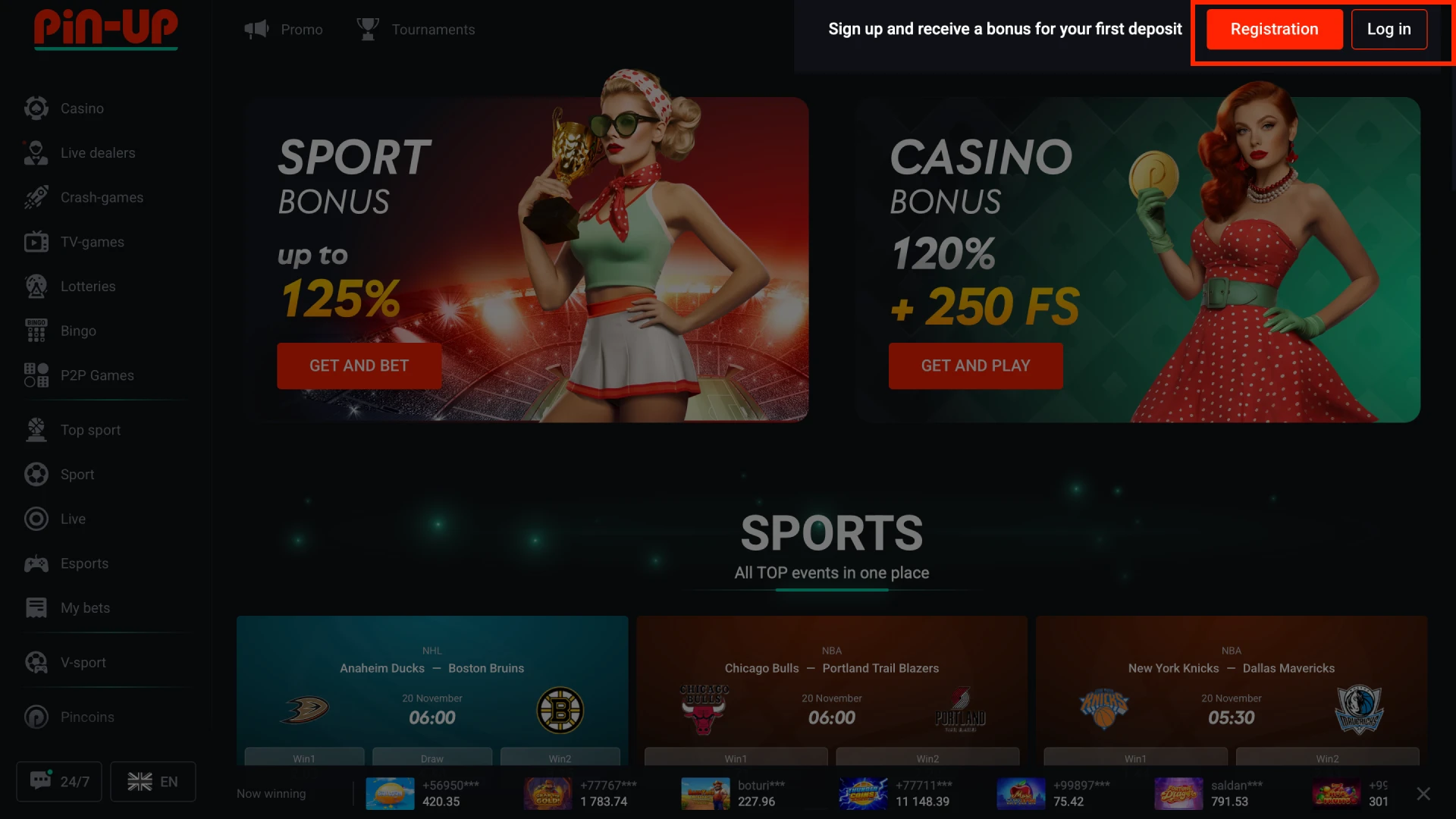 Open our homepage or app and log in Pin up, then enter your phone number or email address and password.